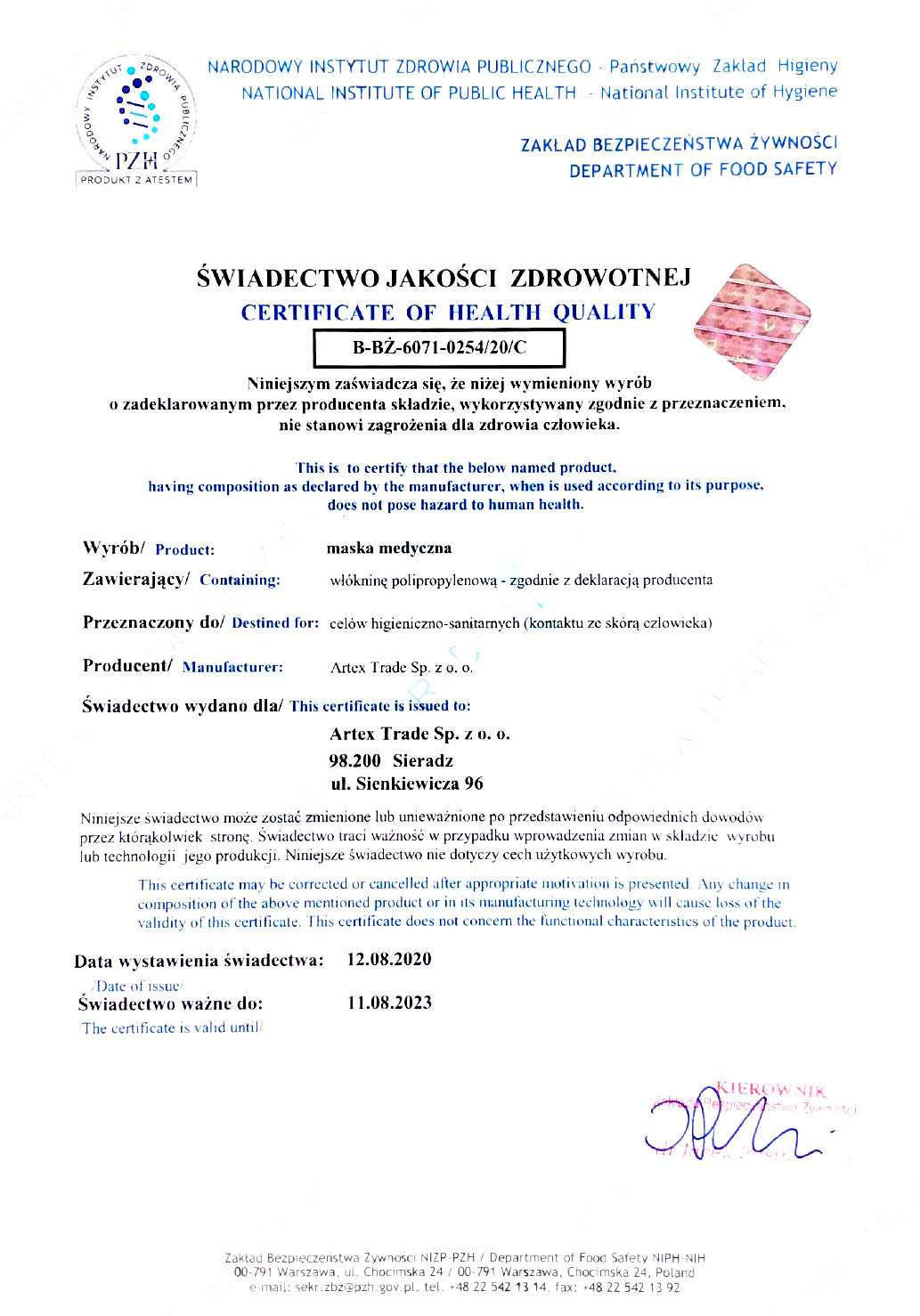 - Należy unikać dotykania maski w czasie jej używania – gdy do tego dojdzie, należy dokładnie umyć ręce.